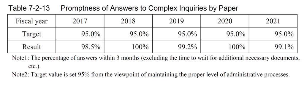 As regards the disclosure request based on the Act concerning Access to Information Held by Administrative Organs, 4,574 requests were addressed to the NTA as a whole during the one-year period up to the end of March 2021. Out of determined cases for disclosure, decisions made for “total disclosure” accounted for 13.8% and the combined figure of decisions for “total disclosures” and “partial disclosure” came to 97.4%, putting the NTA at the higher bracket of disclosure ratios.