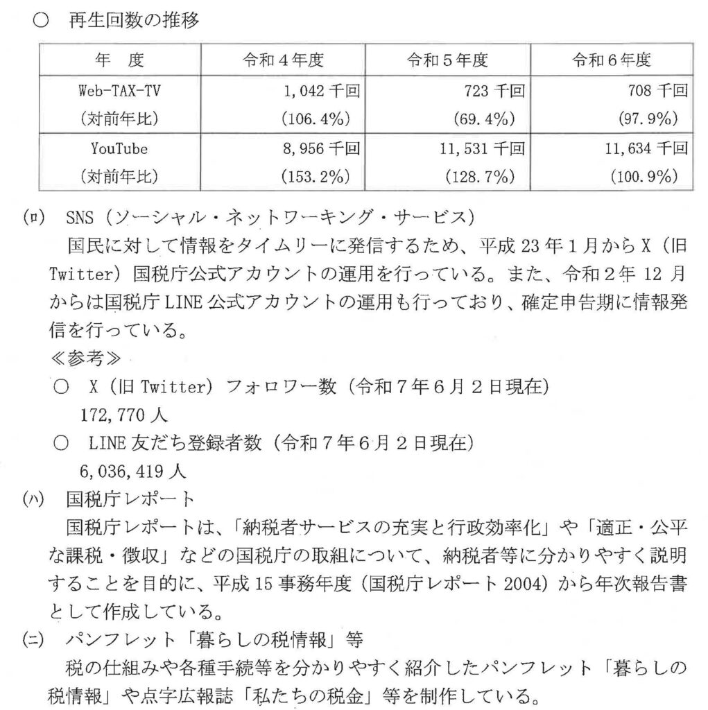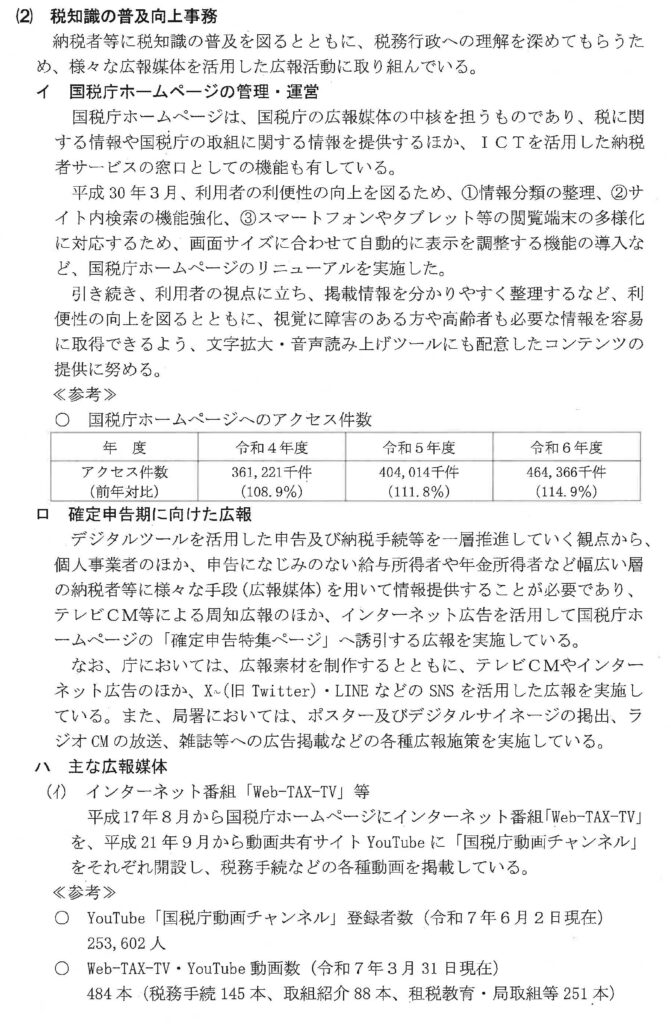 国税庁のホームページや動画・youtubeにはどのくらいアクセスがあるの?