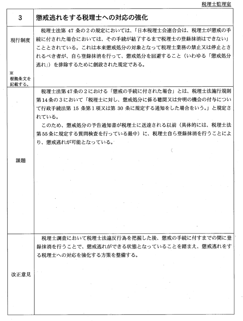 | 3 | 懲戒逃れをする税理士への対応の強化 | 総 務 課 (税理士監理室) | ||||||