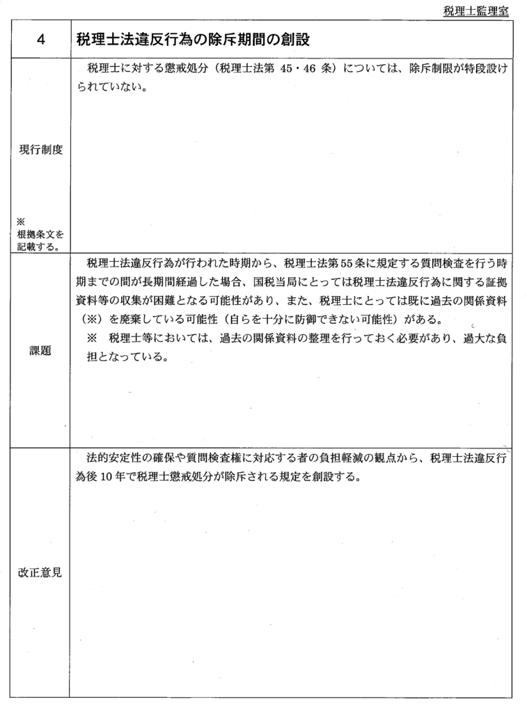 | 4 | 税理士法違反行為の除斥期間の創設 | 総 務 課 (税理士監理室) | ||||||