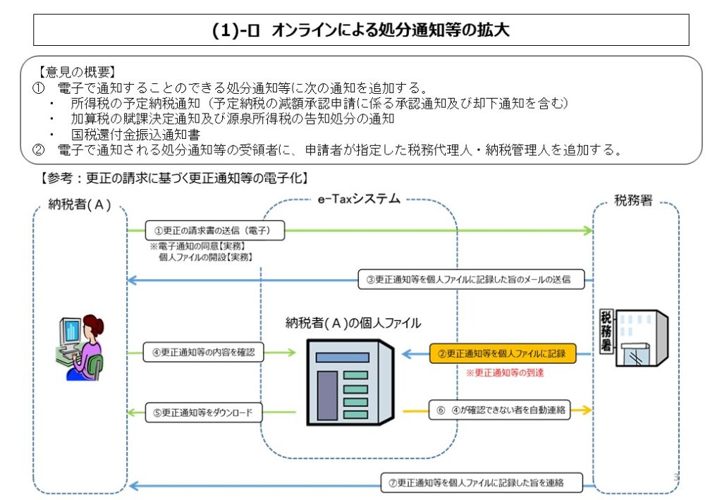 | 7 | 処分通知等の電子化の拡充 | 総 務 課 (税理士監理室)消 費 税 室 個 人 課 税 課資 産 課 税 課法 人 課 税 課 情 報 技 術 室 | ||||||