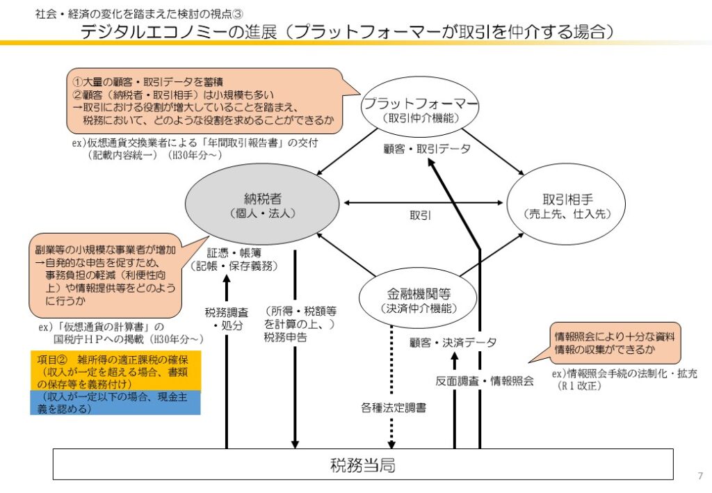 | 改正意見 | シェアリングエコノミーや副業等の所得を有する者(雑所得を生ずべき業務を行う者)の適正課税の確保等の観点から、次の見直しを行う。 | |