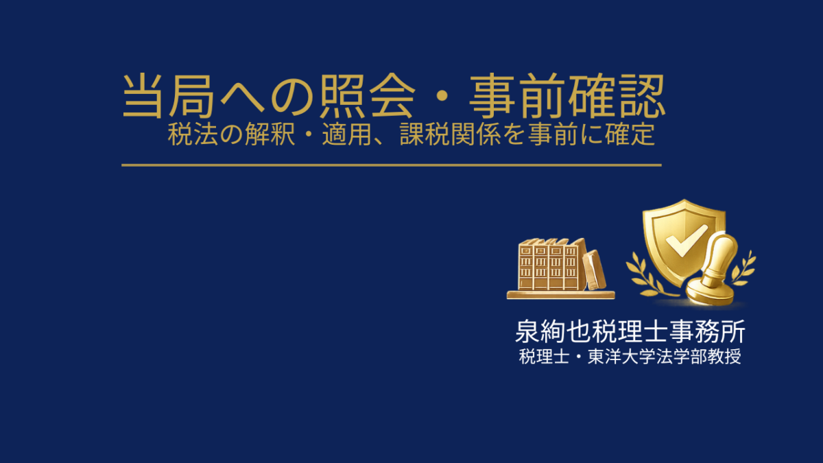 当局への照会・事前確認とは、取引を行う前に税務署や国税庁への事前照会(文書回答手続)または税理士によるセカンドオピニオン(専門家意見書)を通じて、課税関係を事前に確定させる手続きです。「税務署に相談したいが代理を頼みたい」「グレーゾーンについて税理士のセカンドオピニオンが欲しい」というニーズに対応します。